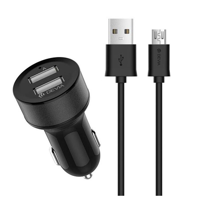 —Автомобильное зарядное устройство Devia Smart Dual, кабель Micro